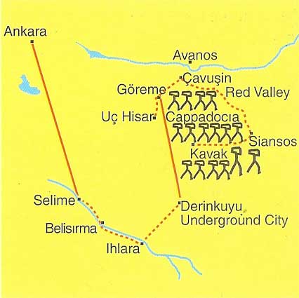 de la Cappadoce. Nuit en pension. 5h. de marche